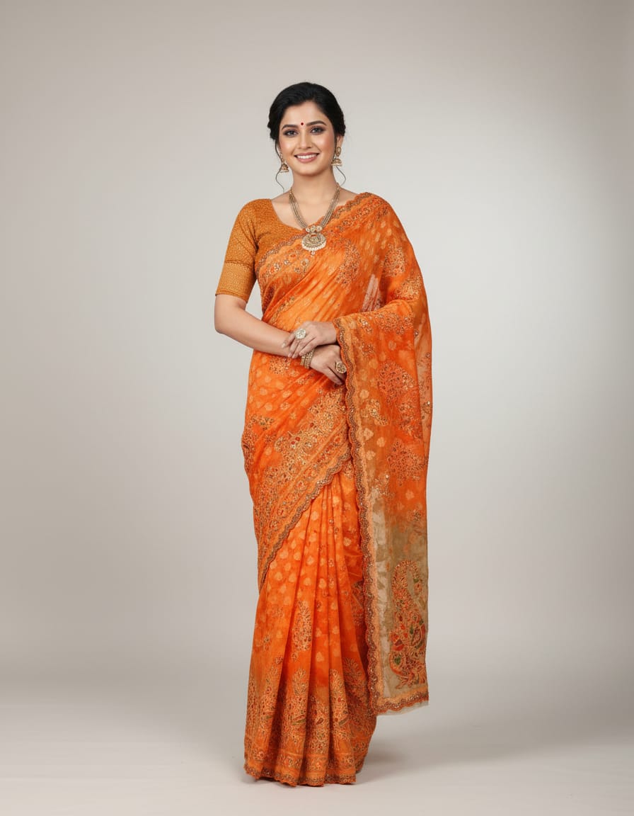 Be the first to review “Pure braso work saree with fancy contrast heavy border”