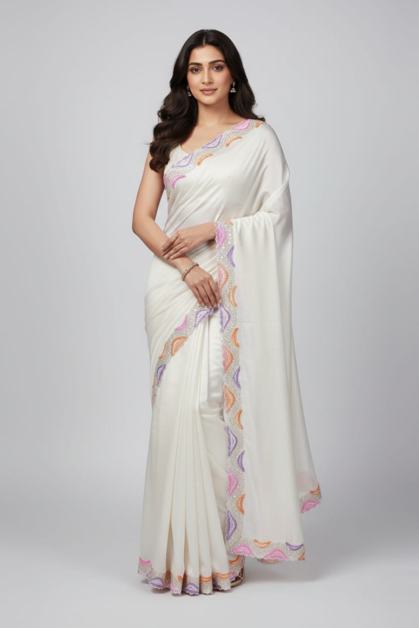 Pure Dola silk fabric saree brush print border