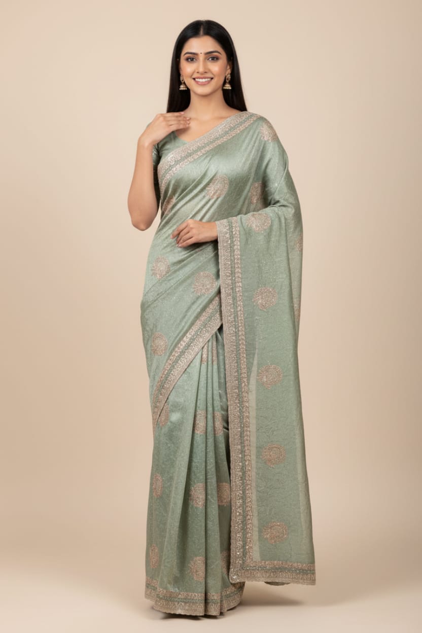Fancy Fandy crush chiffon fabric with heavy embroidery work border and blouse