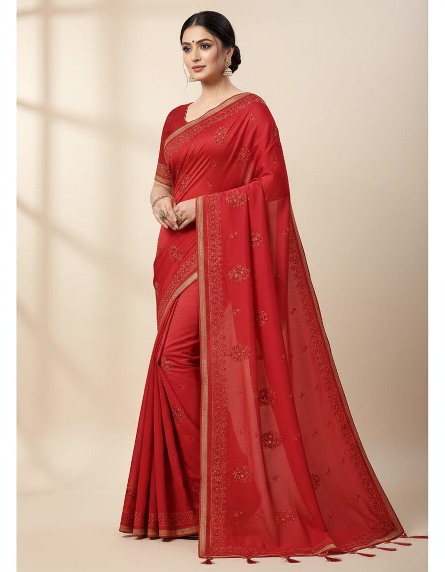 PURE COTTON FABRIC with resham embroidery work SAREE WITH BLOUSE PIECE