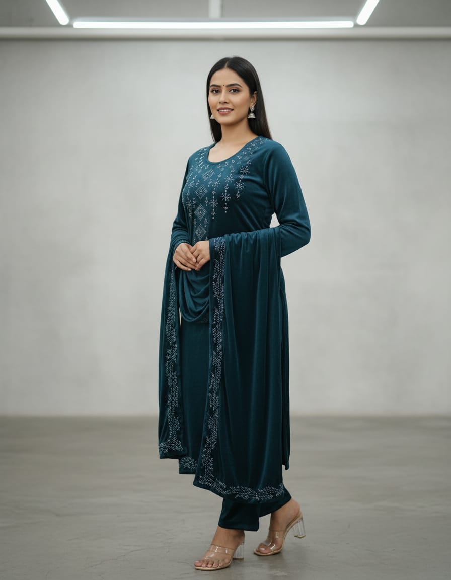 PURE velvet FABRIC DIGITAL PRINT TOP WITH velvet stall DUPATTA AND PUREvelvet FABRIC BOTTOM
