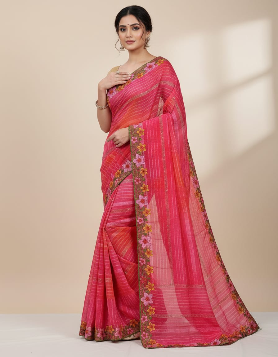 REPPAL FABRIC DIGITAL PRINT SAREE WITH HEAVY EMBROIDERY RESHAM WORK BORDER